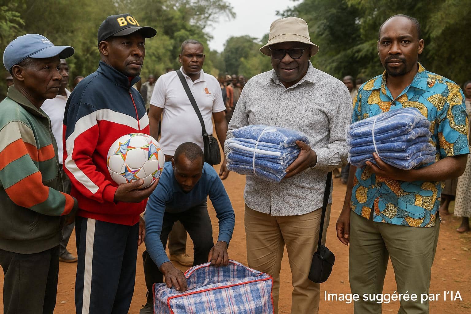 Sous la bruine matinale de la saison sèche, la place centrale d’Oubouesse s’est transformée en terrain d’émotion, lorsque des sacs bourrés de ballons et de maillots flambant neufs ont été déchargés d’un pick-up poussiéreux sous le regard curieux des écoliers alignés au premier rang.